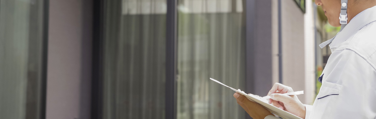 建物の内外と建物の敷地、及びその周辺状況の管理で、建物の外部や敷地の点検(写真撮影)、敷地内のゴミ拾いなどを行います。