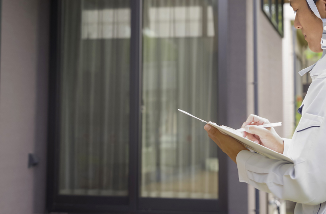 建物の内外と建物の敷地、及びその周辺状況の管理で、建物や敷地の点検(写真撮影)に加え、窓を開けての通風、通水・封水、敷地内のゴミ拾いなどを行います。